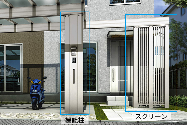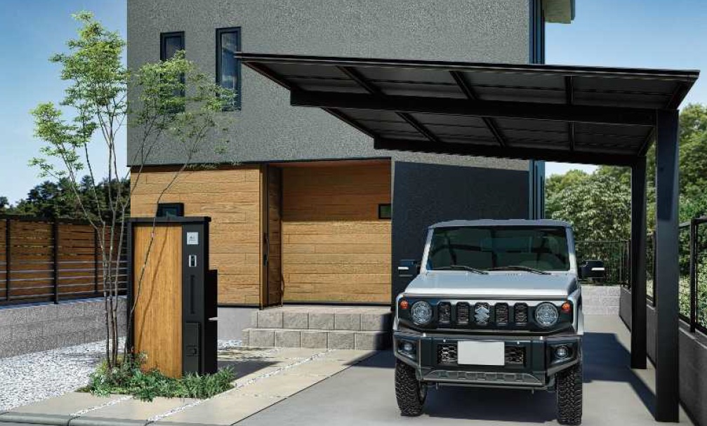エフルージュ最大の魅力、それはカーポートの柱がインターホンやポスト、表札、宅配ボックス等を備えた機能門柱になること!