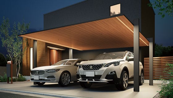 透明度が高く採光性に優れた屋根材と、独自の「シーリングレス工法」により、安定した施工品質が保証できる特長を持ったカーポートです。