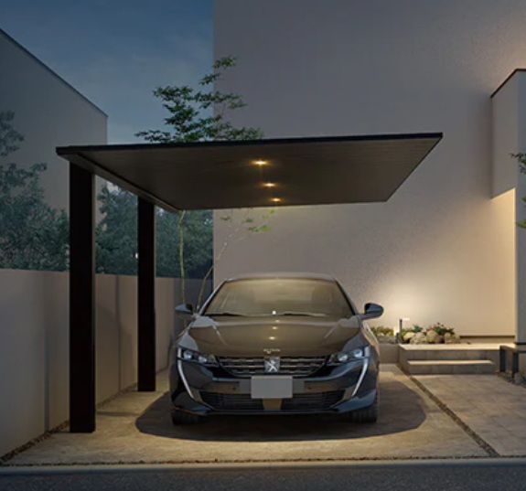 頑張って答えます(笑)。照明、ですね。夜に車の出し入れをされる方はオプションで屋根に照明をつけますよね。LIXILさんや三協アルミさんはラインライトがオプションで選べるんですが、プレーンルーフはダウンライトのみで、ラインライトがありません…。
