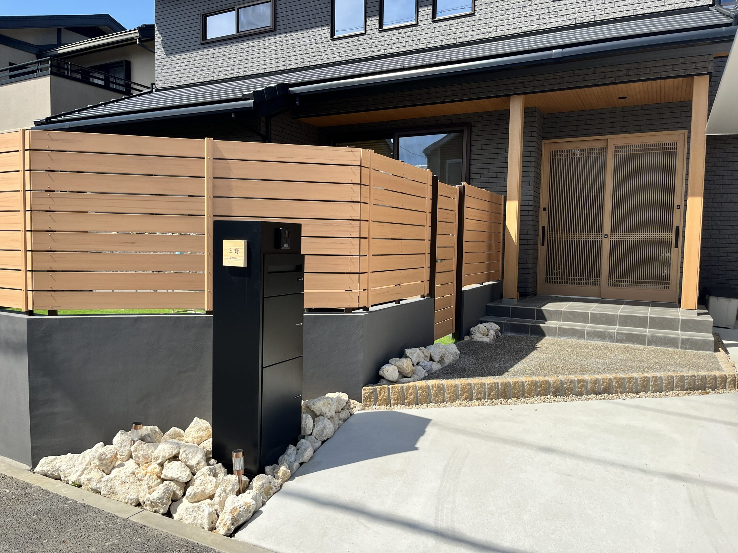 お住まいがスッキリとした和モダンテイストでしたので、カーポートもシンプルイズベストのカーポートSCが絶対に合うと確信しました。/フェンス:B Life Bウッドフェンス/カーポート:LIXIL カーポートSC