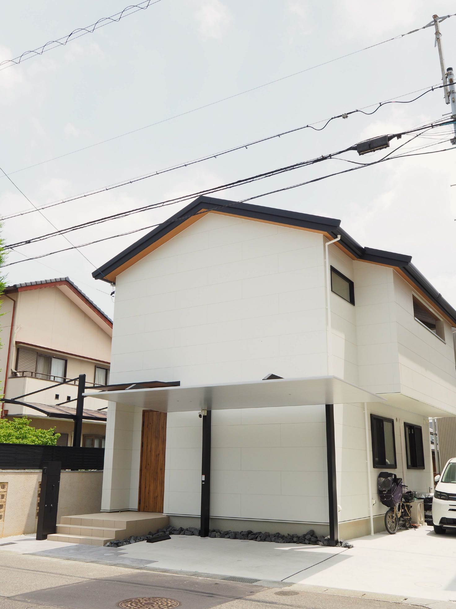 徹底的に無駄を排除した、シンプルの究極であるLIXILのカーポートSC。今や「オシャレなカーポート」の代名詞となり、SNSで見かけて「うちもこれにしよう!」とご要望されるお客様が非常に多くいらっしゃいます。こちらのお施主様もSCの美しさに一目惚れされ、全体的なデザインもSCの美しさが映えるように決めていきました。