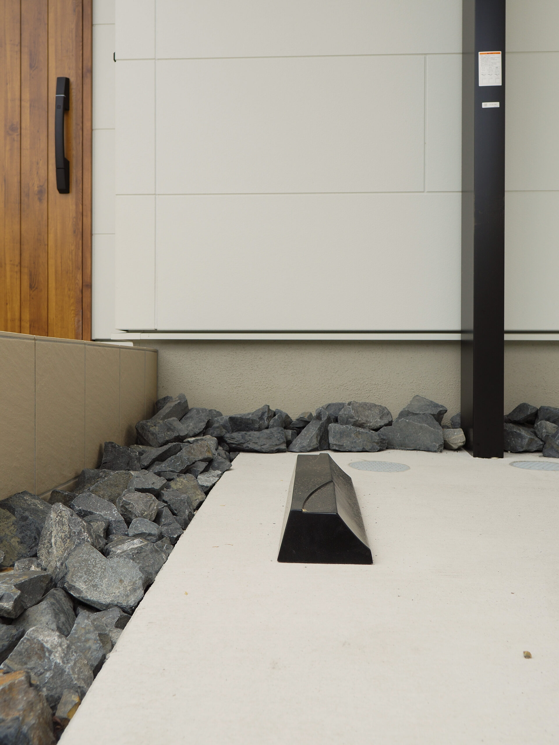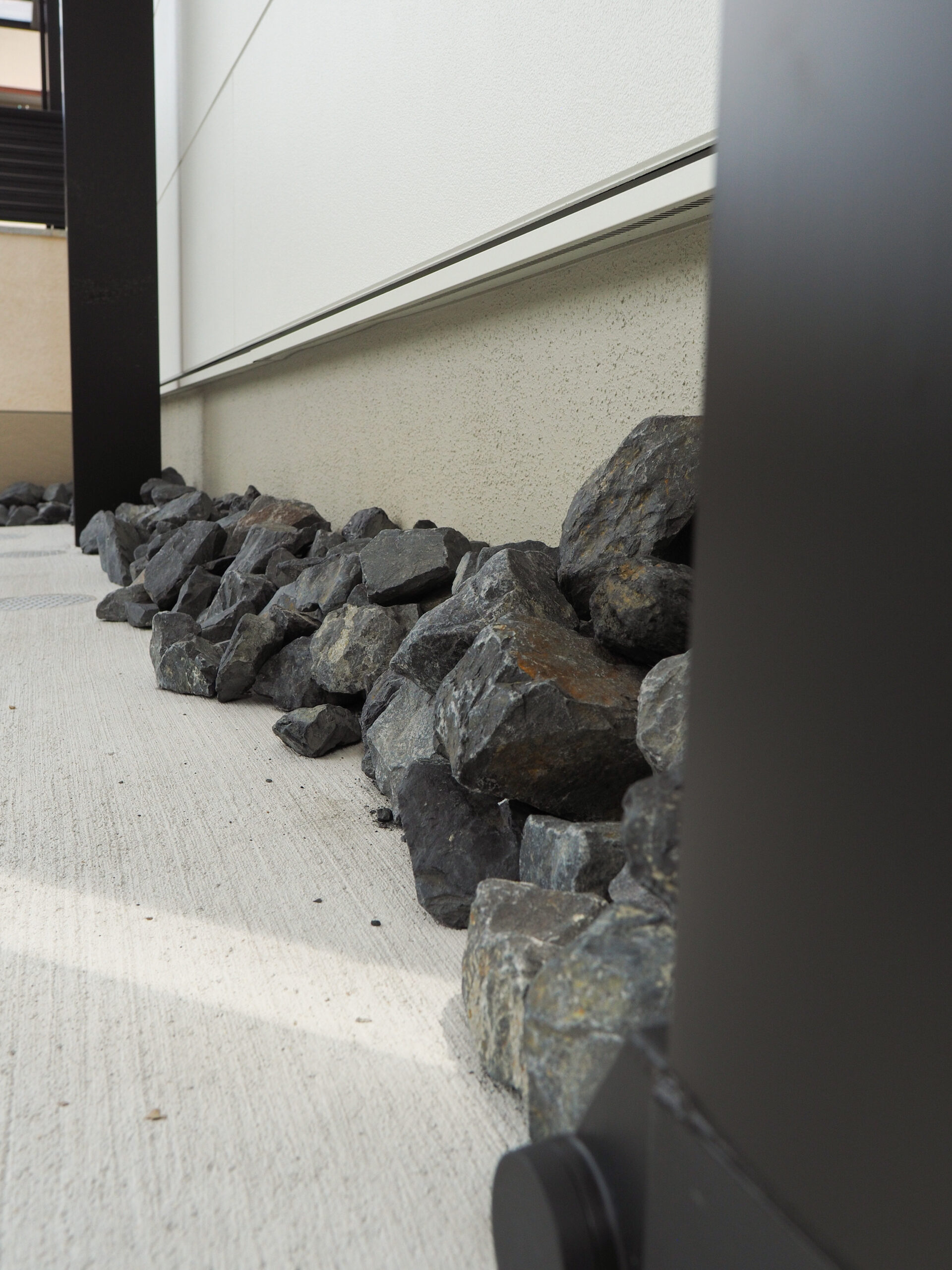 「できるだけお手入れ不要にしたい」というご要望で、植栽は植えずに割栗石を置きました。エクステリアを作っていく上で「お手入れ不要」も非常に重要なポイントです。「季節を感じたいから」とたくさん植栽を植えてしまったけど雑草との闘いだった…と後悔するお声もSNSなどでよく見かけます。植栽はご自身の生活スタイルなどと照らし合わせて決めていくことが大切です。