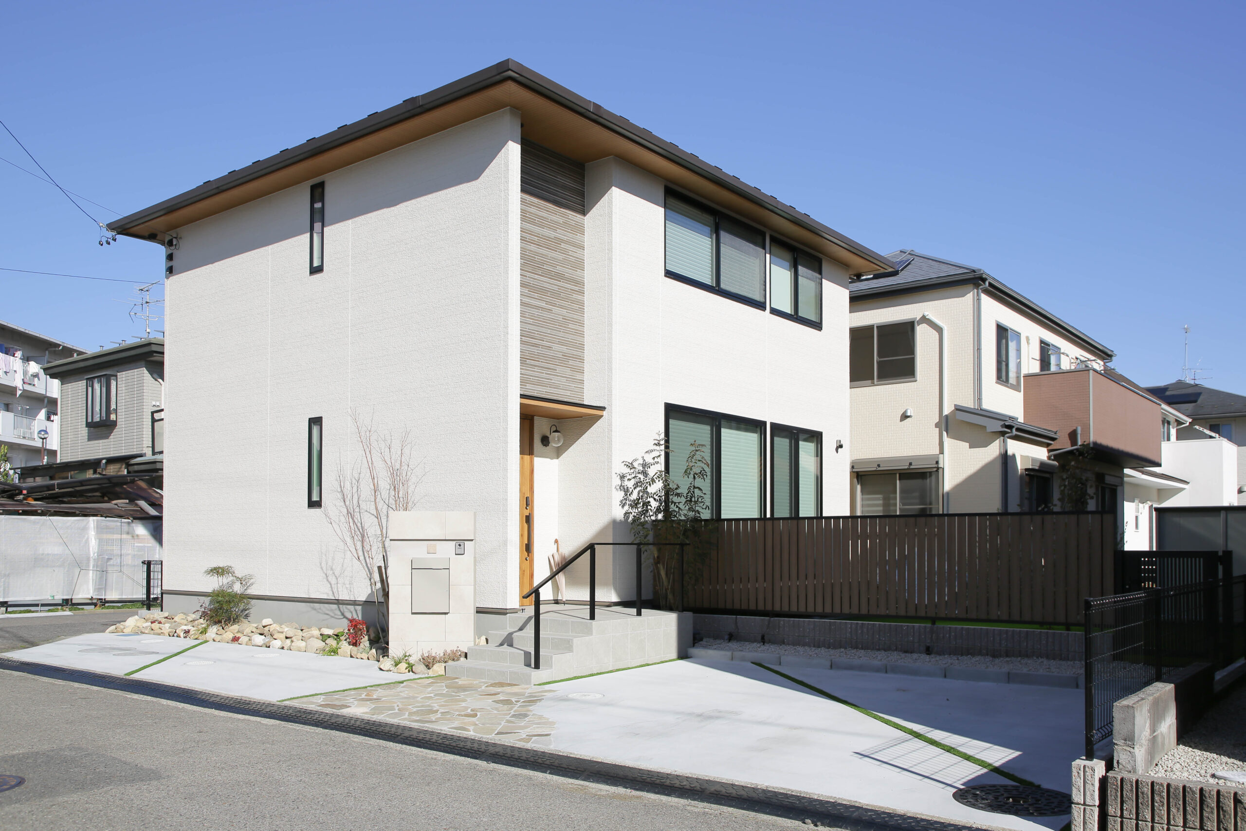 シンプルな中にも木目やベージュなどの優しい色味がアクセントになっているお住まいでしたので、エクステリアも同様に、手すりを黒にしたりしてアクセントをつけつつ、全体的に柔らかい印象になるよう心掛けました。