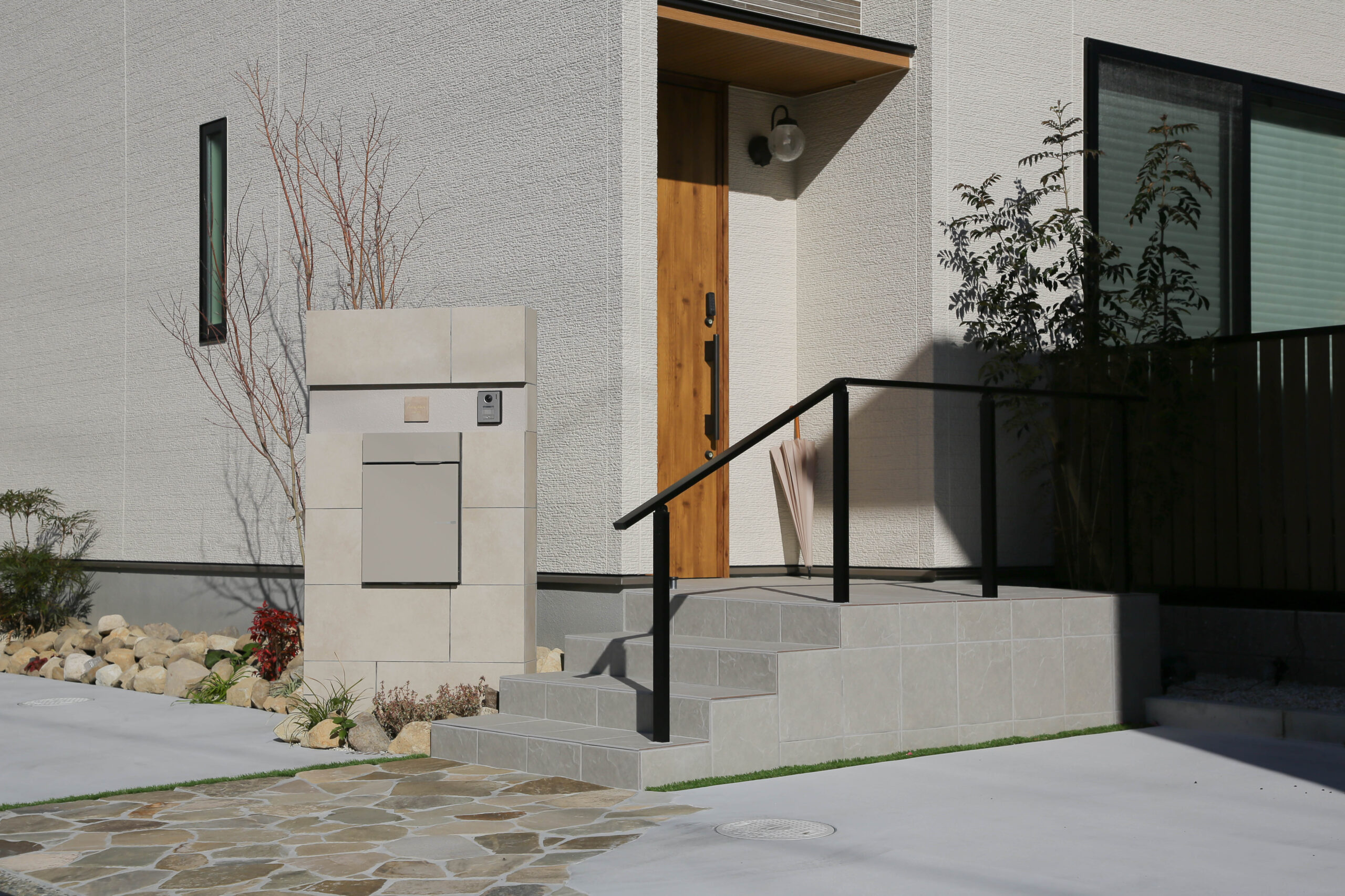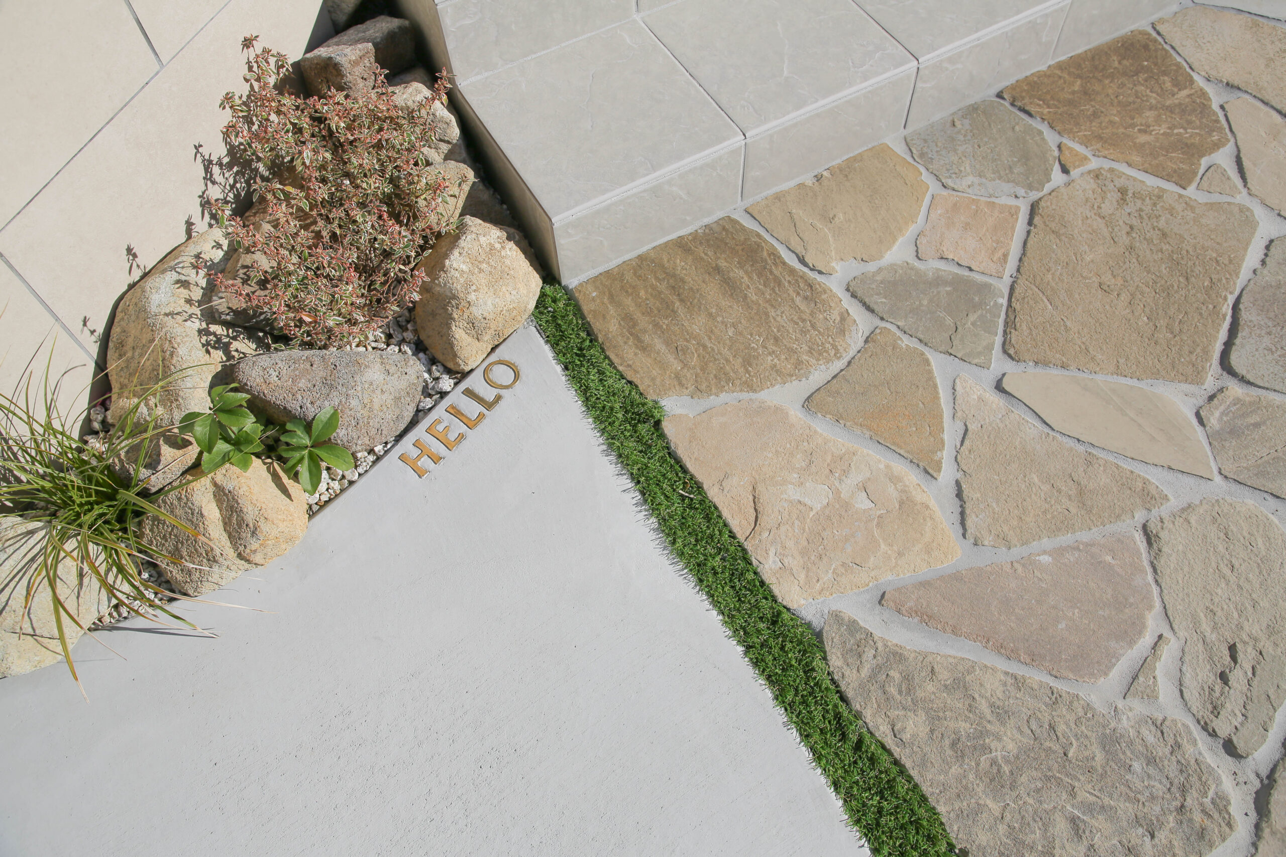 アプローチに乱形の石材を使用したところも、ナチュラル感は出しつつもアクセントになりました。