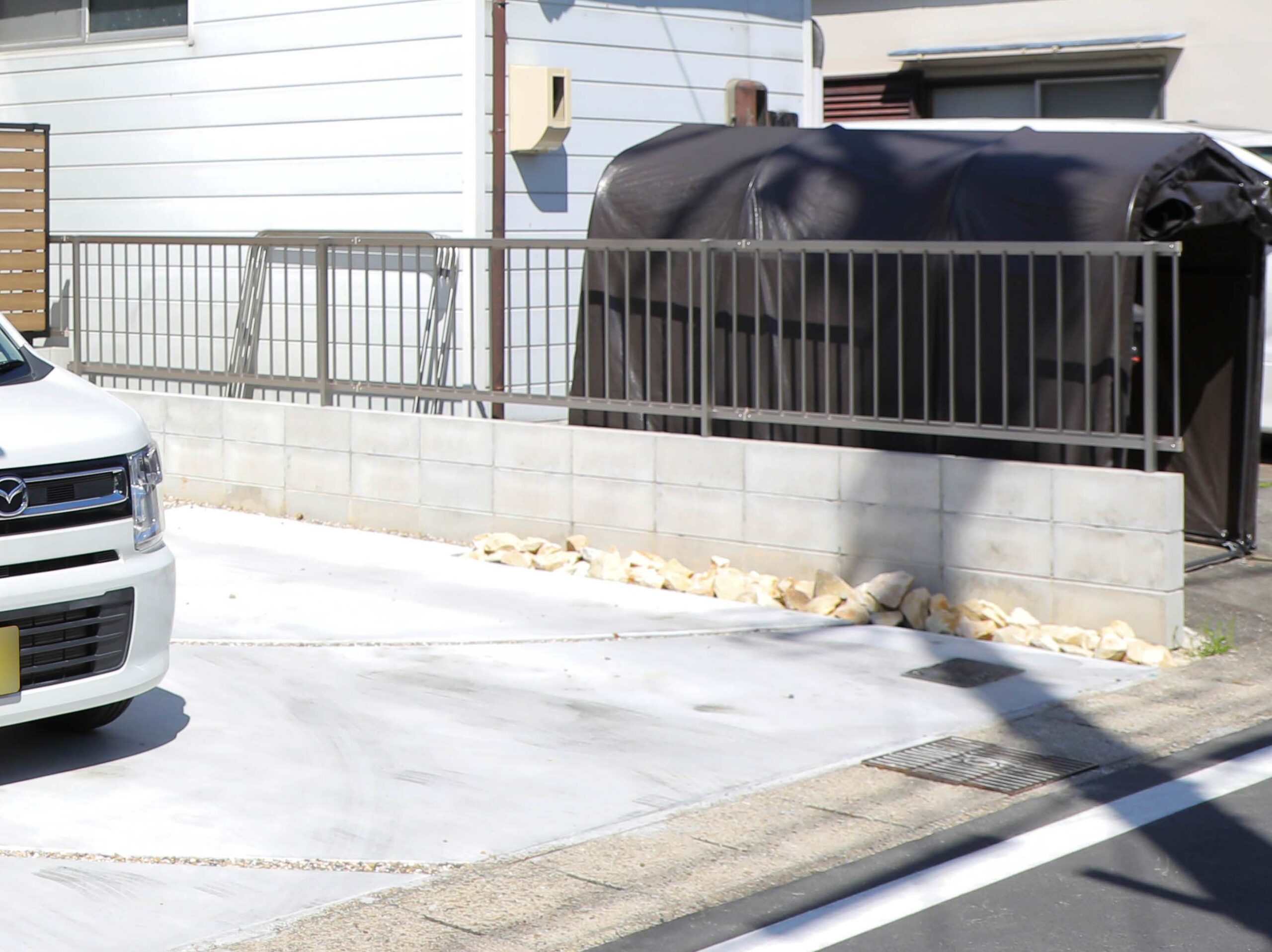 当初はブロックのところまでコンクリートを流し込む予定でしたが、タクミテーブルが工事に入る前に既に設置されていたブロックの基礎が浅く、コンクリートをギリギリまで流せないことが判明。代わりに割栗石を入れるご提案となりましたが、「かえってオシャレに仕上がって良かった!」と喜んでいただけました。このように、臨機応変にそのお土地の状況を見てベストなご提案ができるのもタクミテーブルの強みと言えます。